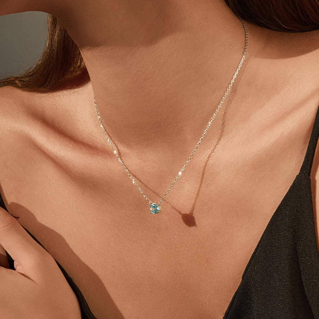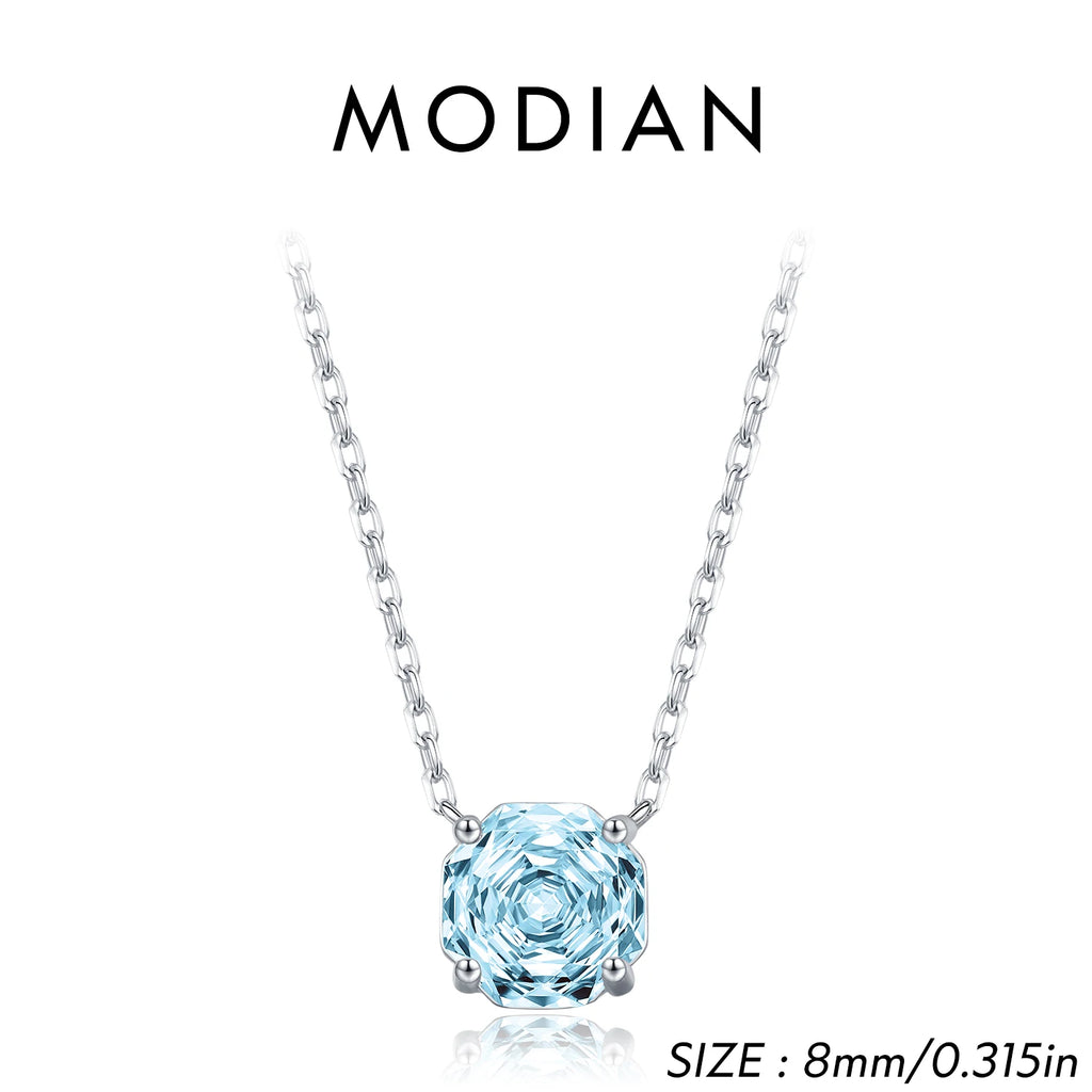 MODIAN 925 Sterling Silver Charming Octagon Sea Blue Rose Cut CZ Pendant Necklace For Women Hypoallergenic Jewelry Gifts
