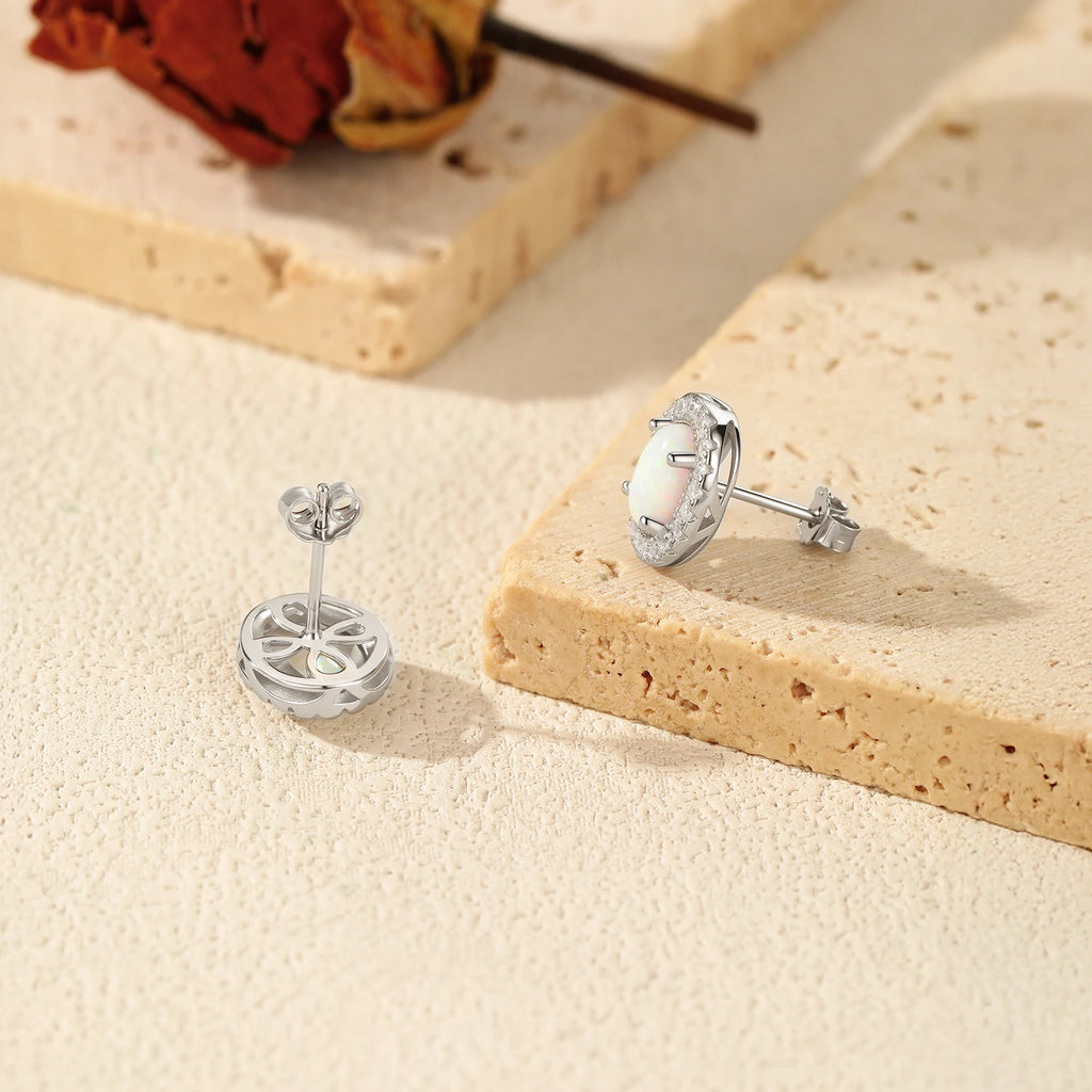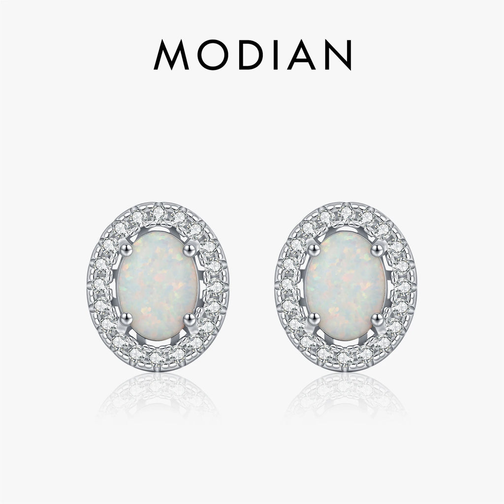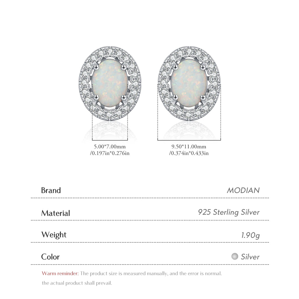 MODIAN 925 Sterling Silver Daily OL Ear Studs Elegant Oval Simulated Halo Opal Stud Earrings For Women Fine Jewelry