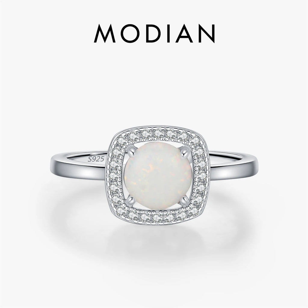 MODIAN 925 Sterling Silver Exquisite Square Rings Elegant Round Halo Opal Finger Rings For Women Dating Fine Jewelry Gifts