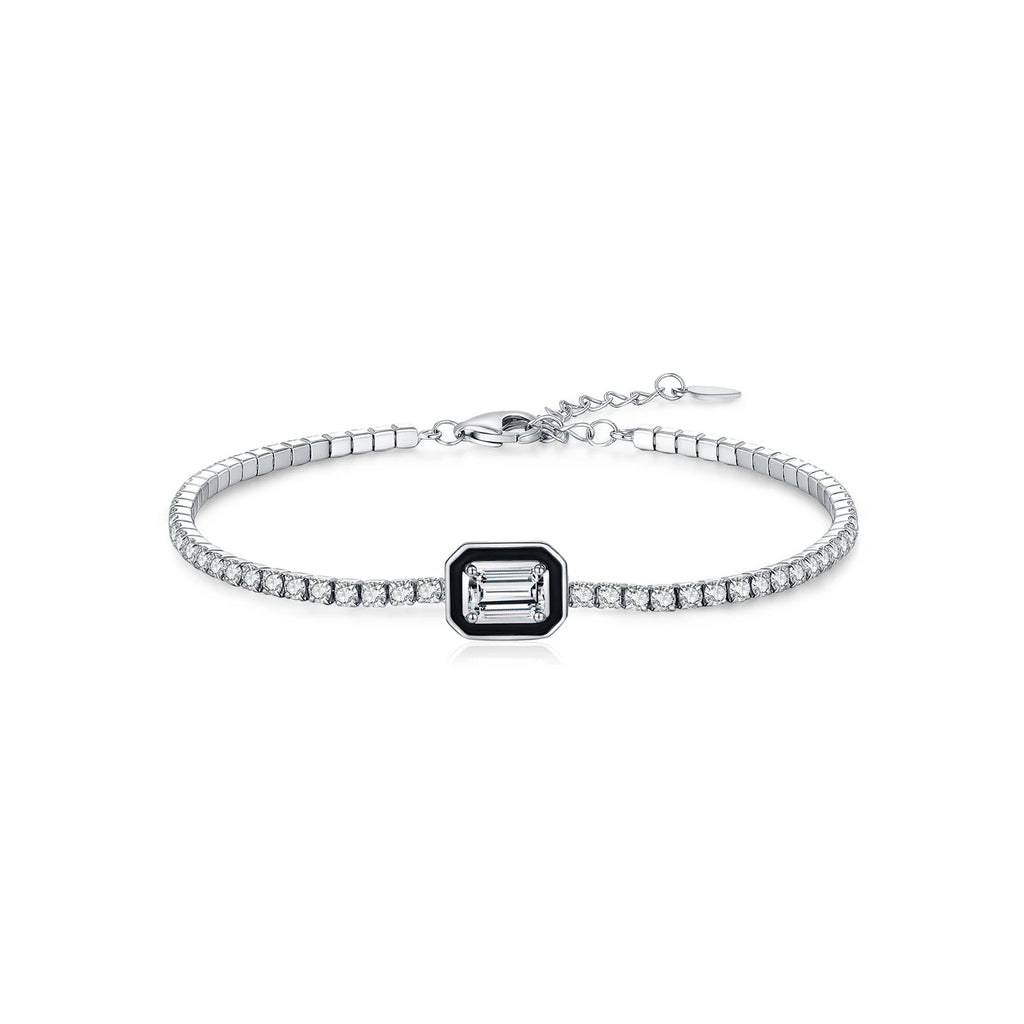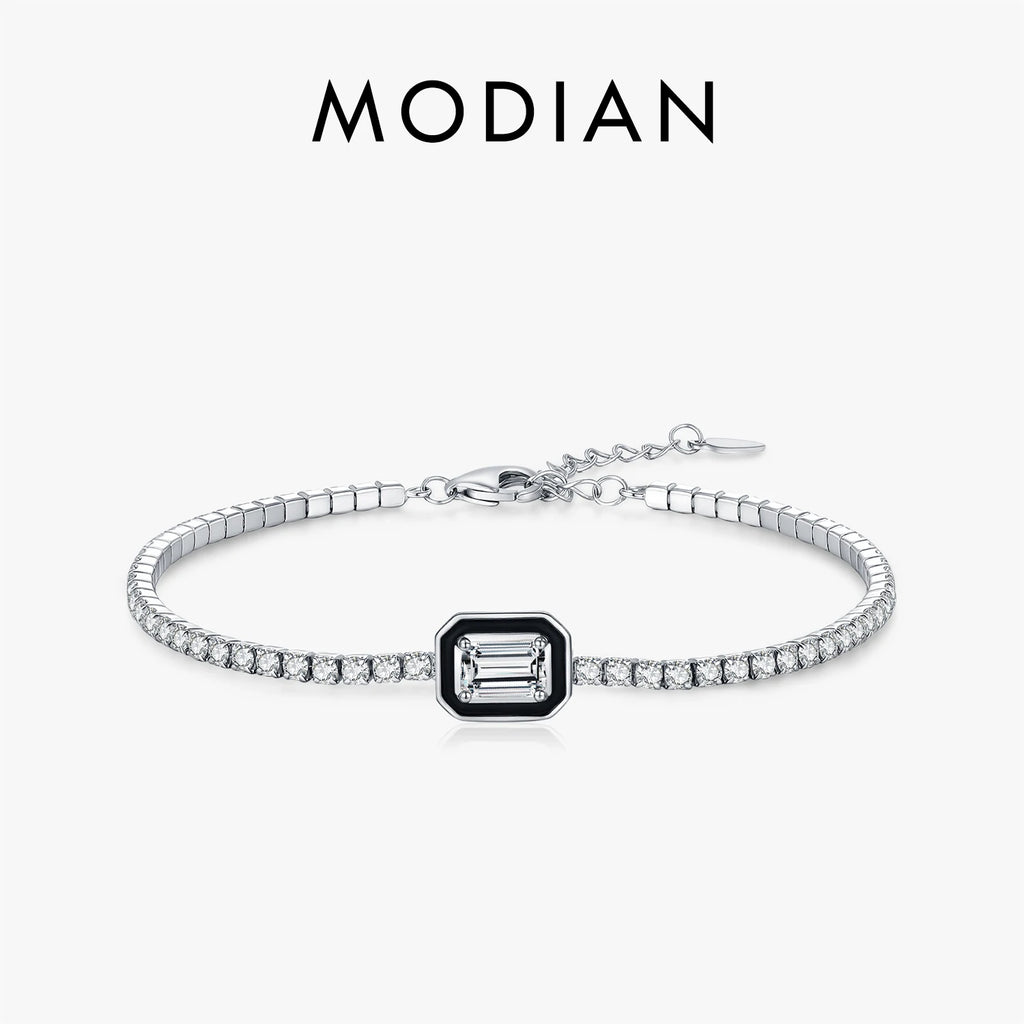MODIAN 925 Sterling Silver Fashion Black Enamel Rectangle Clear Cubic Zirconia Tennis Bracelets For Women Fine Jewelry Gifts