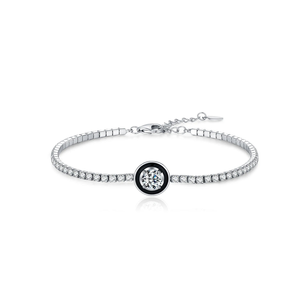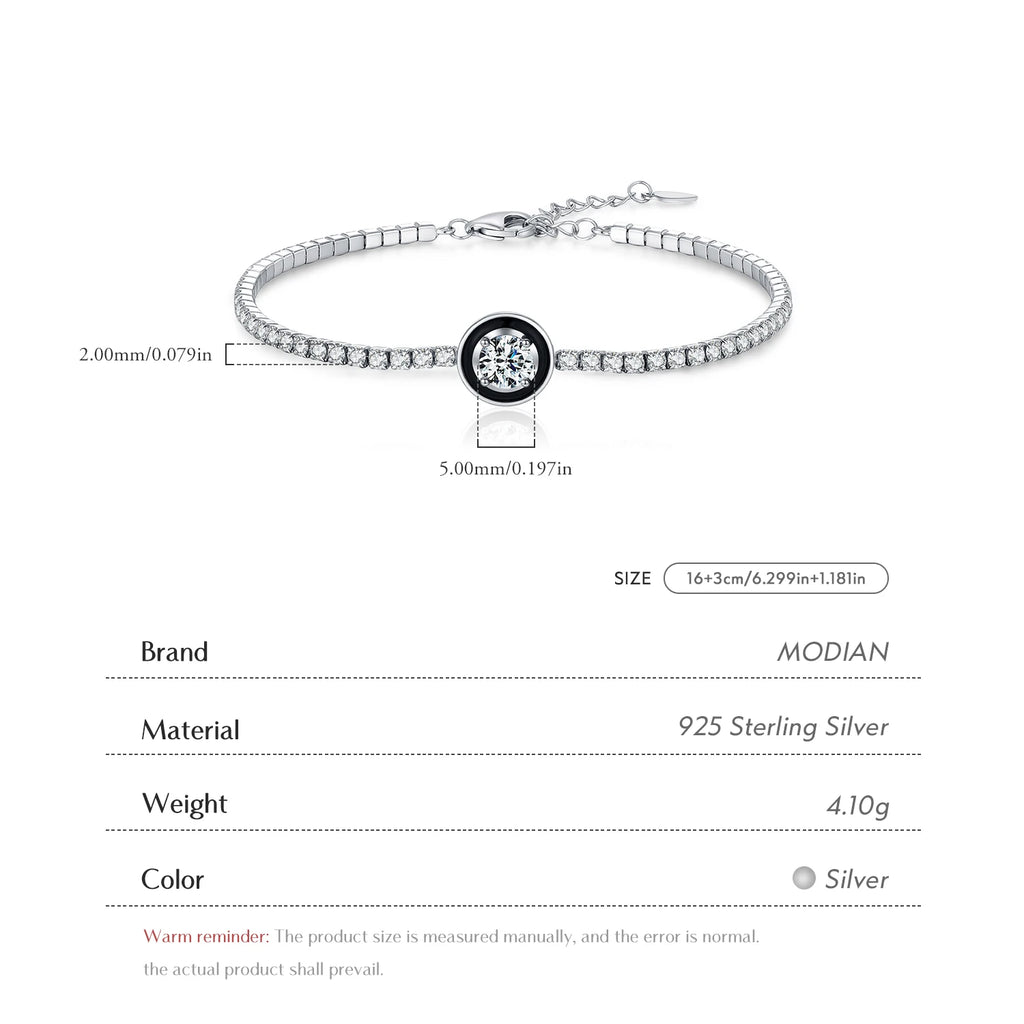 MODIAN 925 Sterling Silver Fashion Black Enamel Round Clear Cubic Zirconia Tennis Bracelet For Women Fine Jewelry Gifts