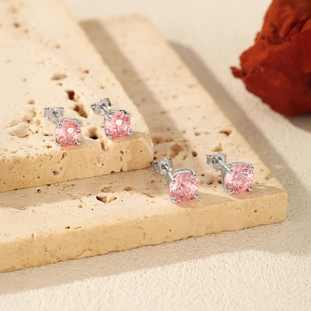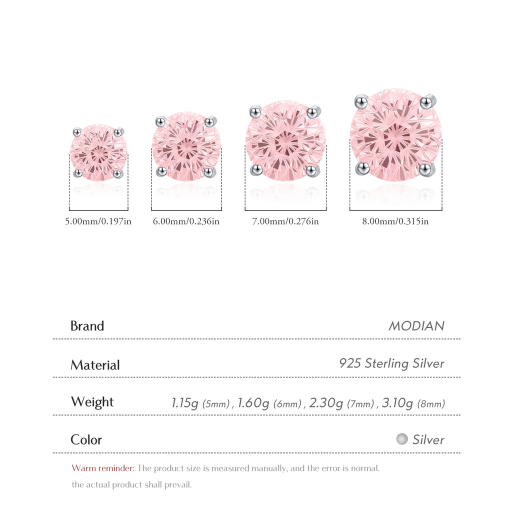 MODIAN 925 Sterling Silver Multiple Sizes Morgan Pink Firework Cut Round CZ Stud Earrings For Women Fine Jewelry