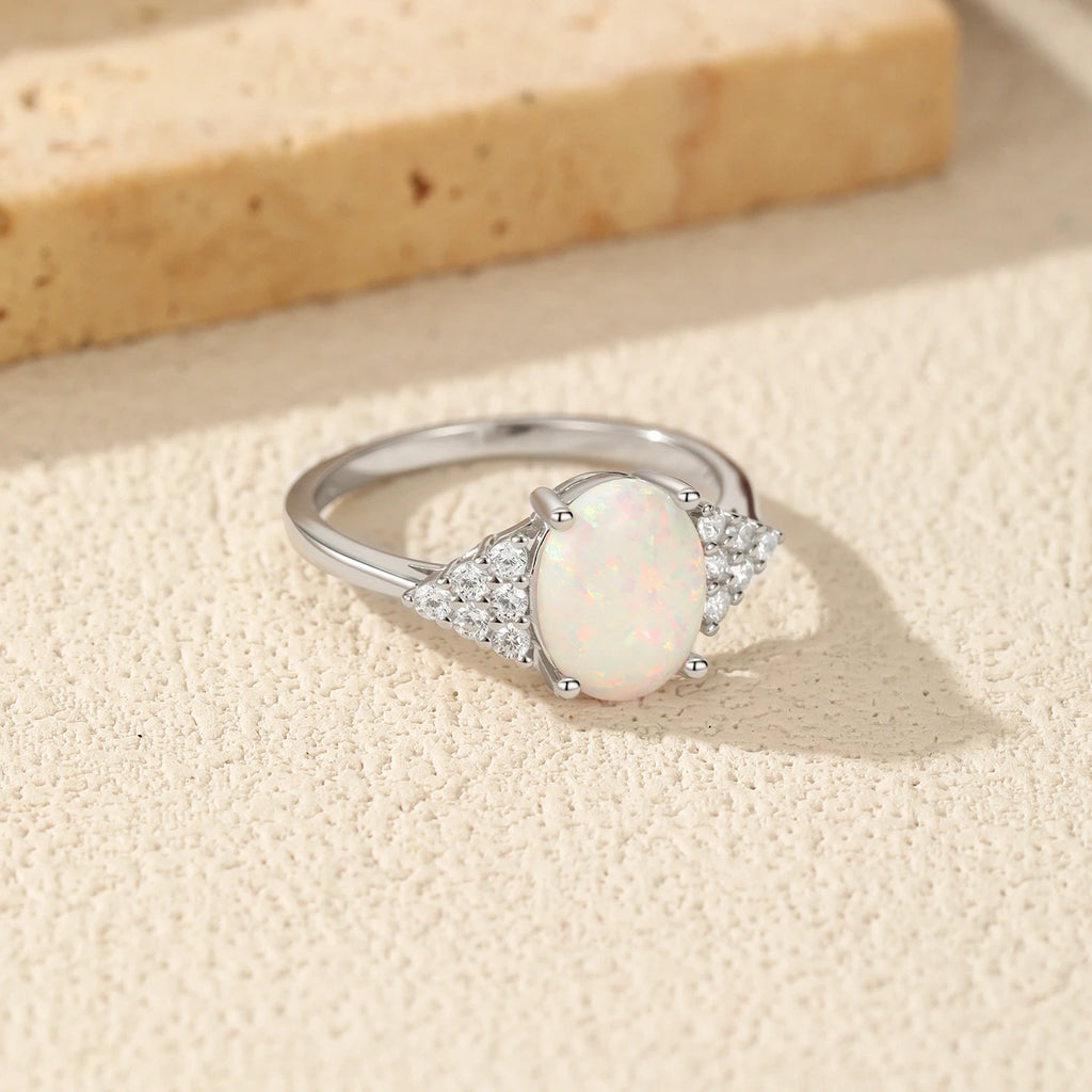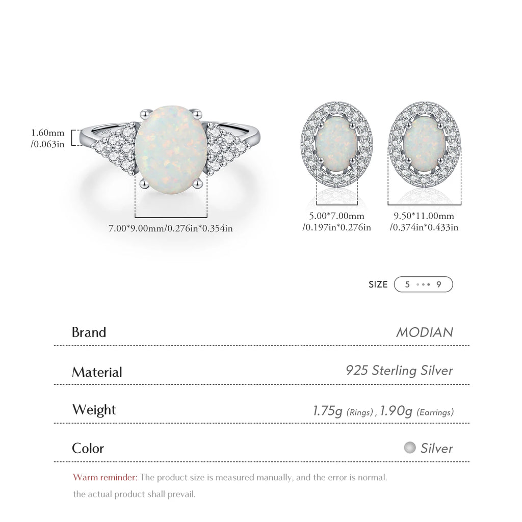 MODIAN 925 Sterling Silver Oval Ear Studs Fashion Elegant Opal Finger Rings For Women Office Fine Jewelry Sets