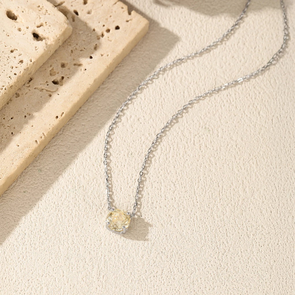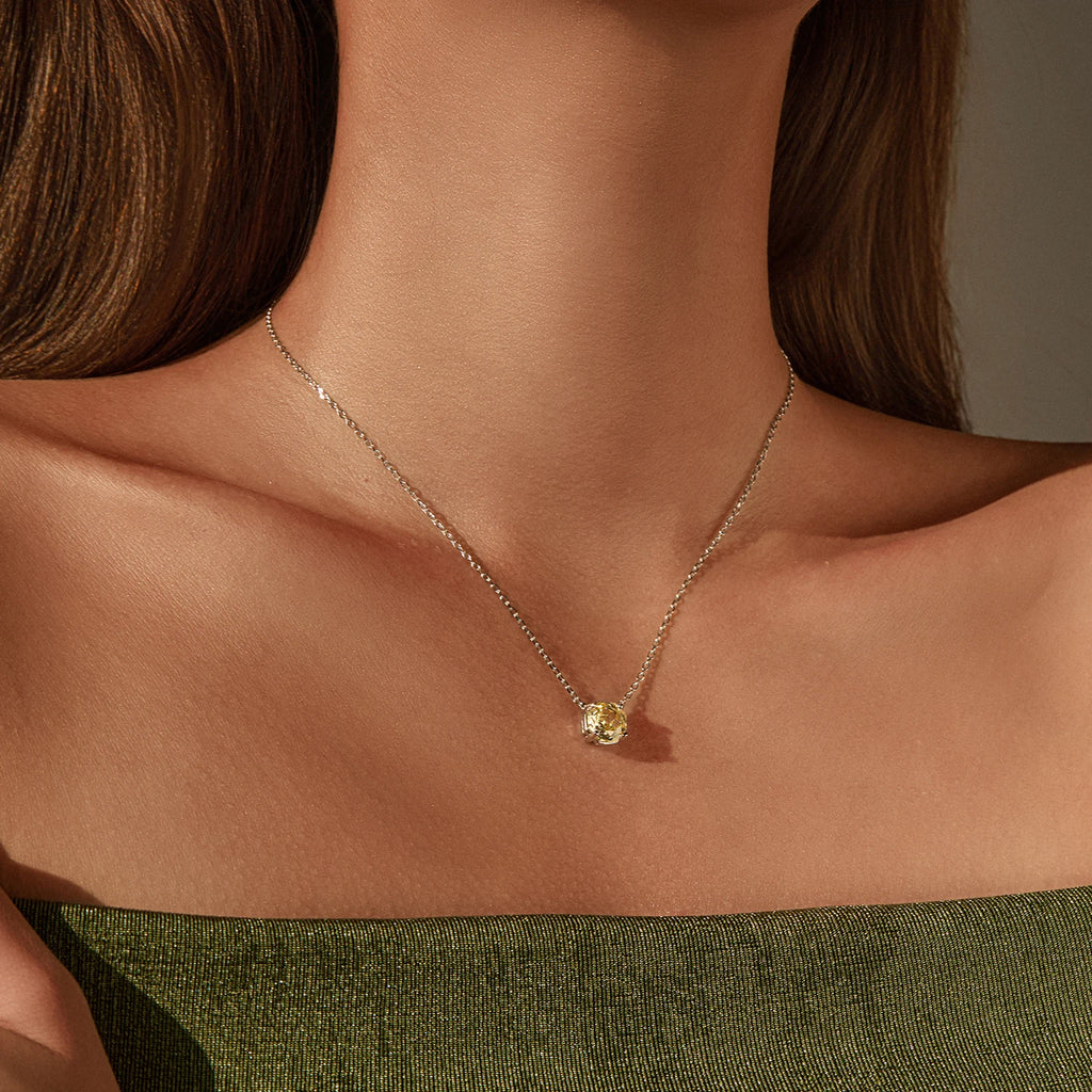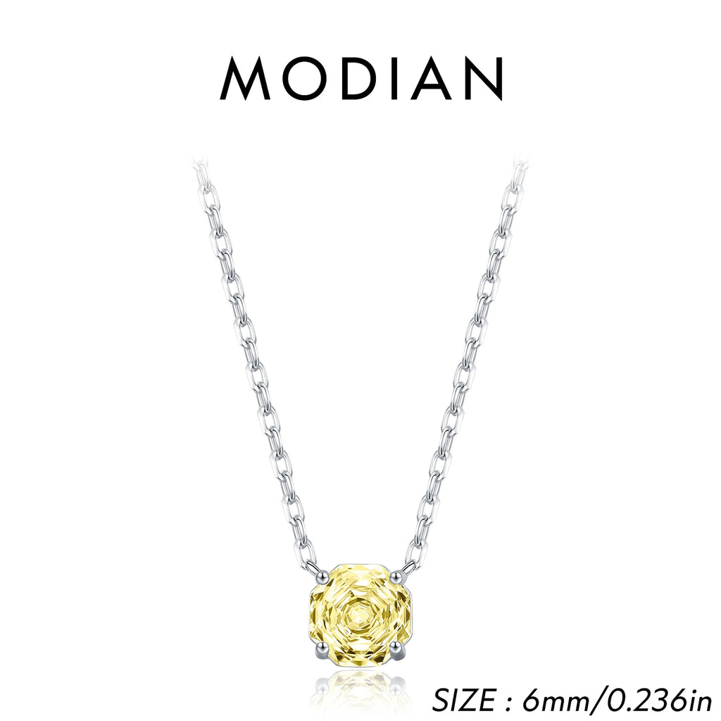 MODIAN 925 Sterling Silver Pendant Necklace Dazzling Light Yellow Rose Cut Zirconia Necklaces For Women Fine Jewelry