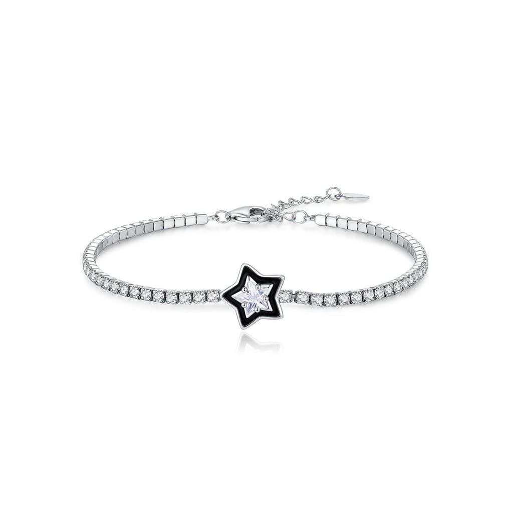MODIAN 925 Sterling Silver Shinning Stars Zirconia Black Enamel Tennis Bracelets For Women Vacation Fine Jewelry