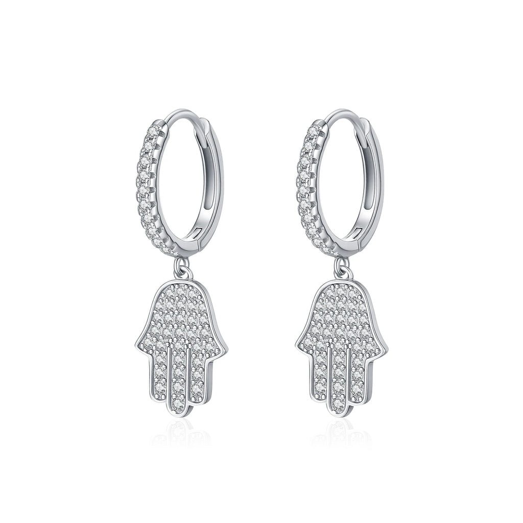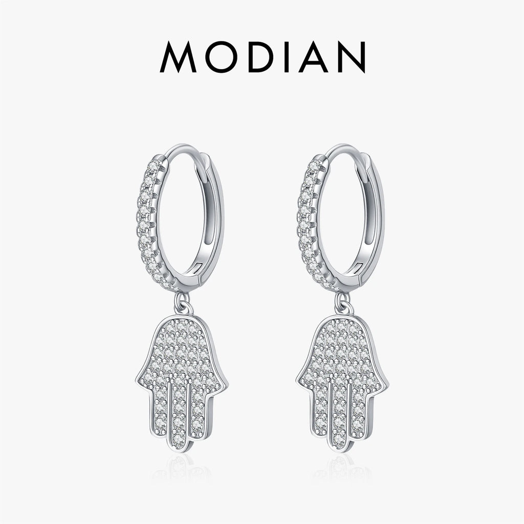 MODIAN 925 Sterling Silver Sparkling CZ Ear Buckle Classic Palm Swings Hoop Earrings For Women Daily Vacation Fine Jewelry