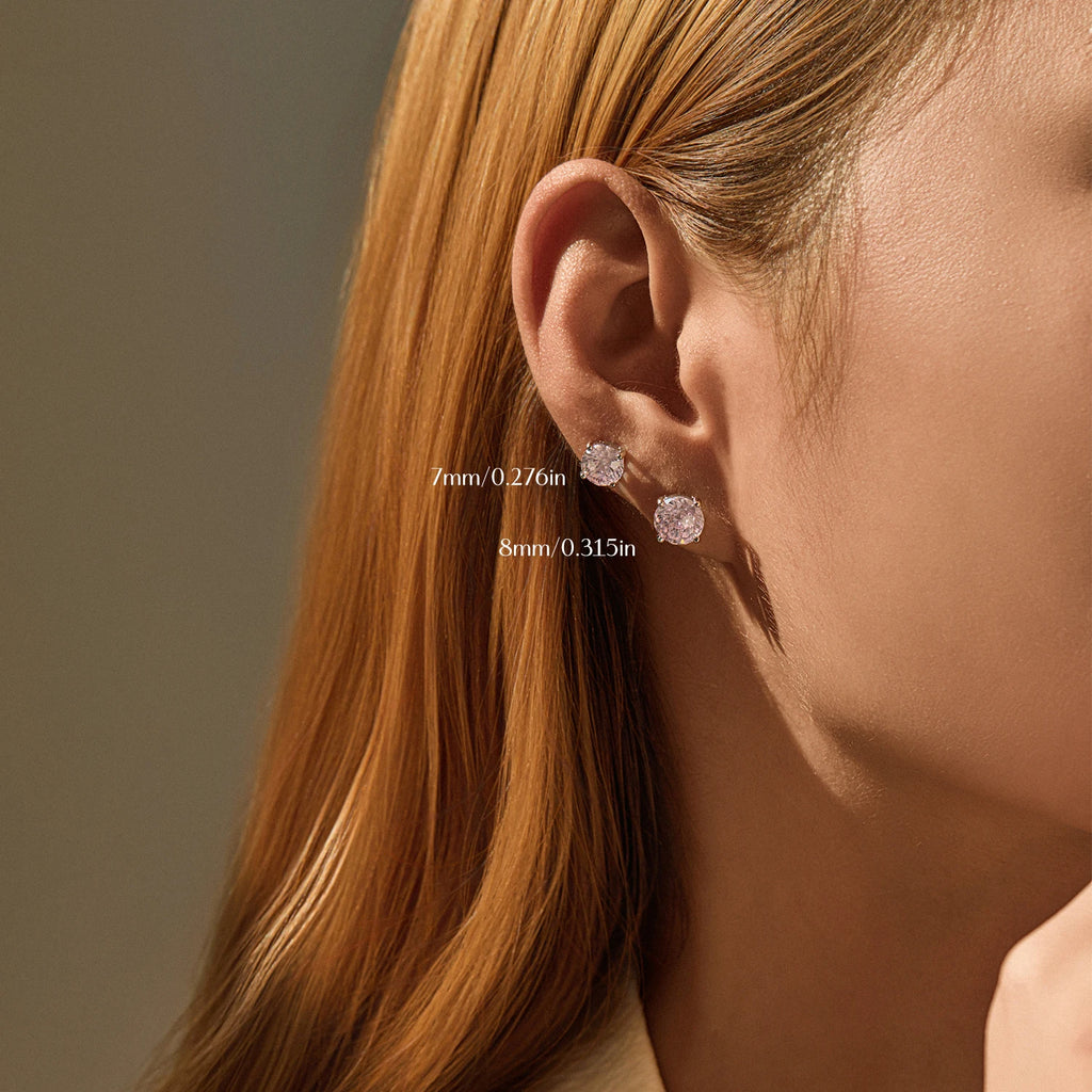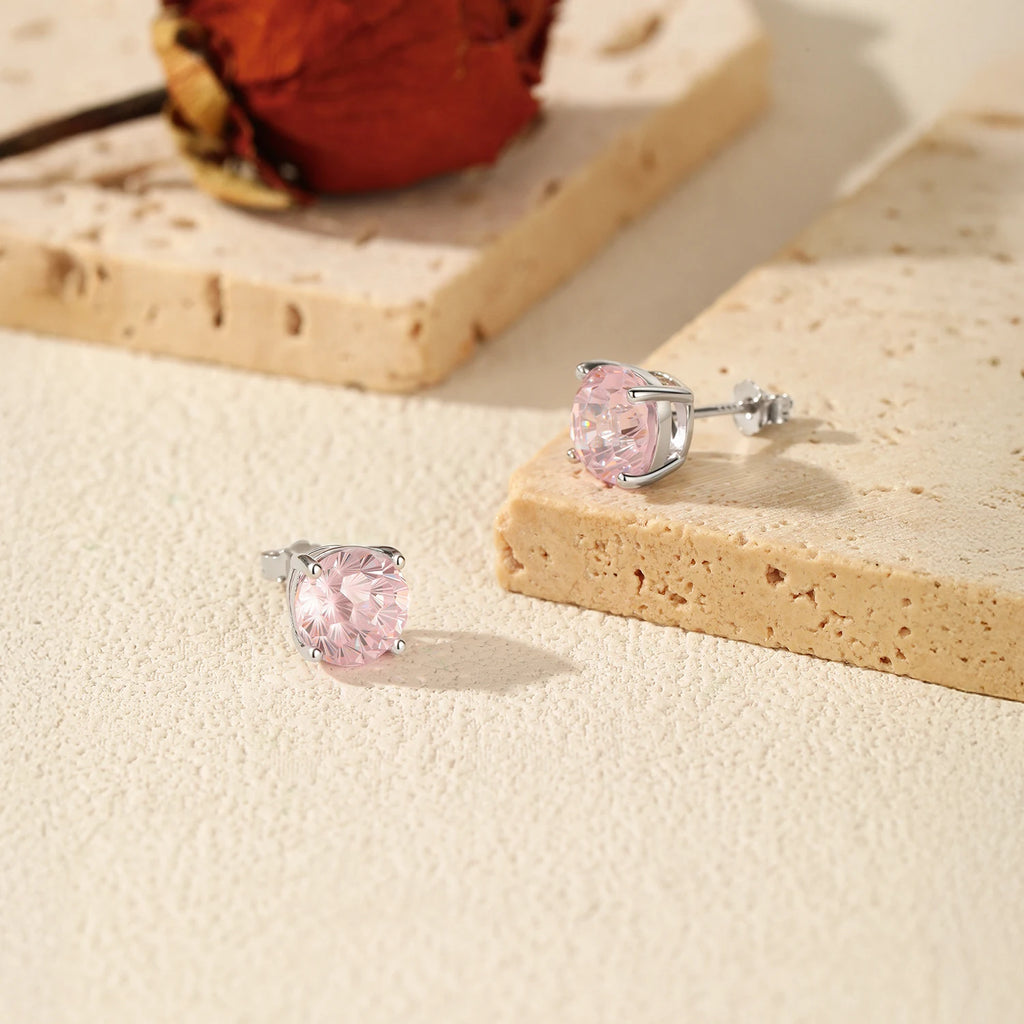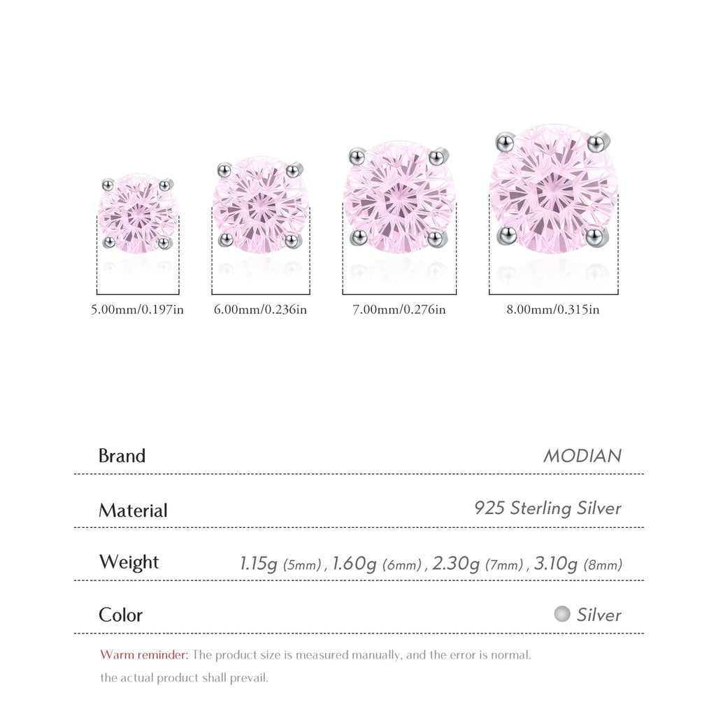 MODIAN 925 Sterling Silver Sweet Light Pink Round Firework Cut CZ Studs Earrings For Women And Men Fine Jewelry