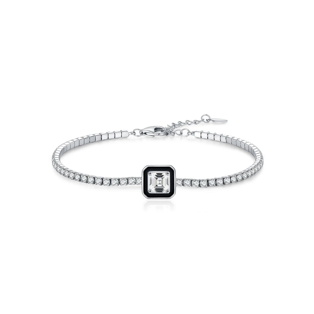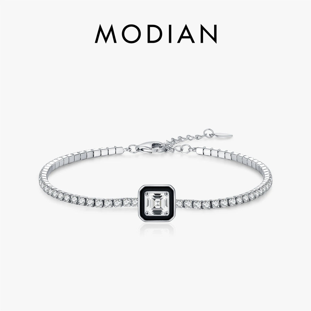 MODIAN Black Enamel Bracelet 925 Sterling Silver Simple Square Zirconia Bracelet Fashion Tennis Bracelets For Women Fine Jewelry