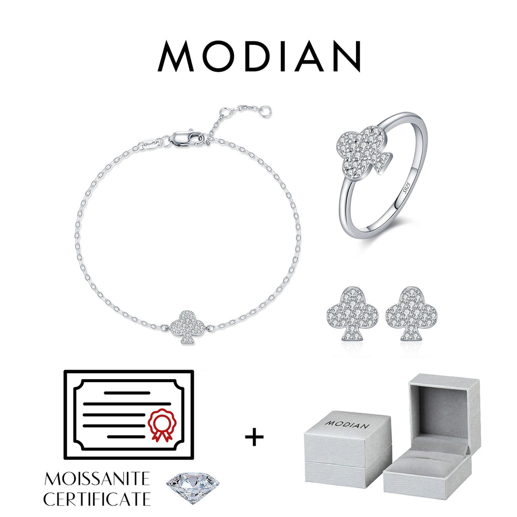 MODIAN Moissanite Ear Studs 925 Sterling Silver Original Design Clubs Rings Bracelet For Women Fine Jewelry Sets