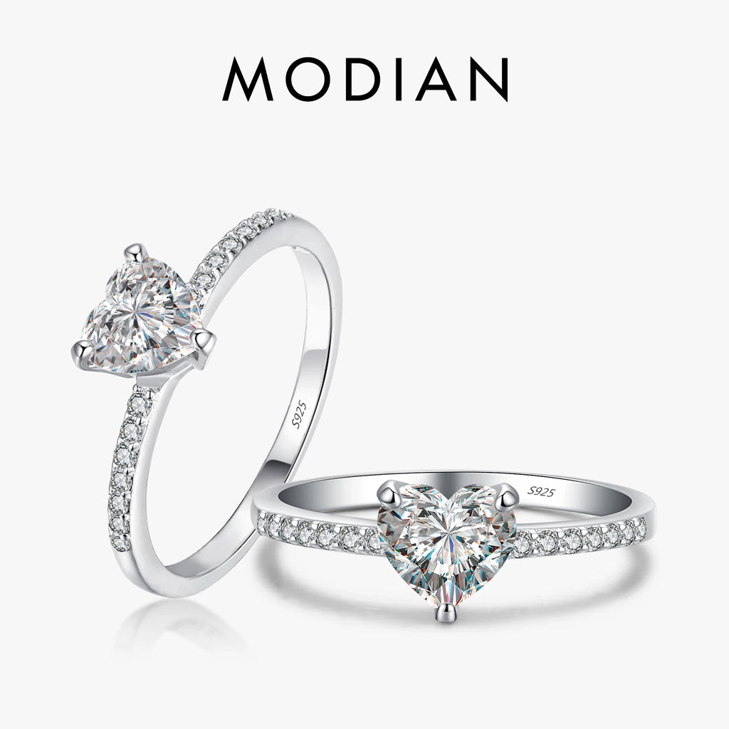 MODIAN Romantic Heart Rings 925 Sterling Silver Dazzling Clear CZ Finger Rings For Women Wedding Engagement Statement Jewelry