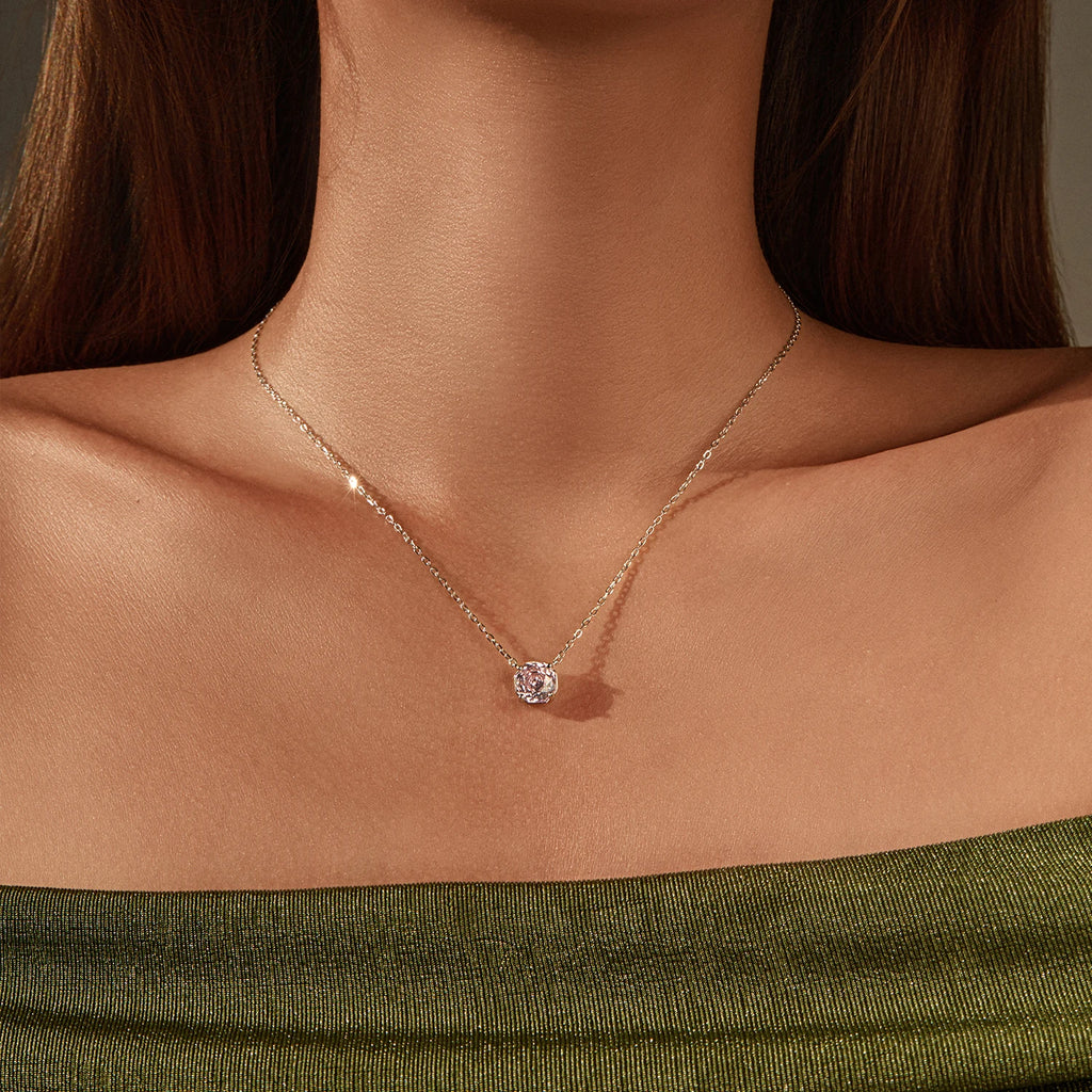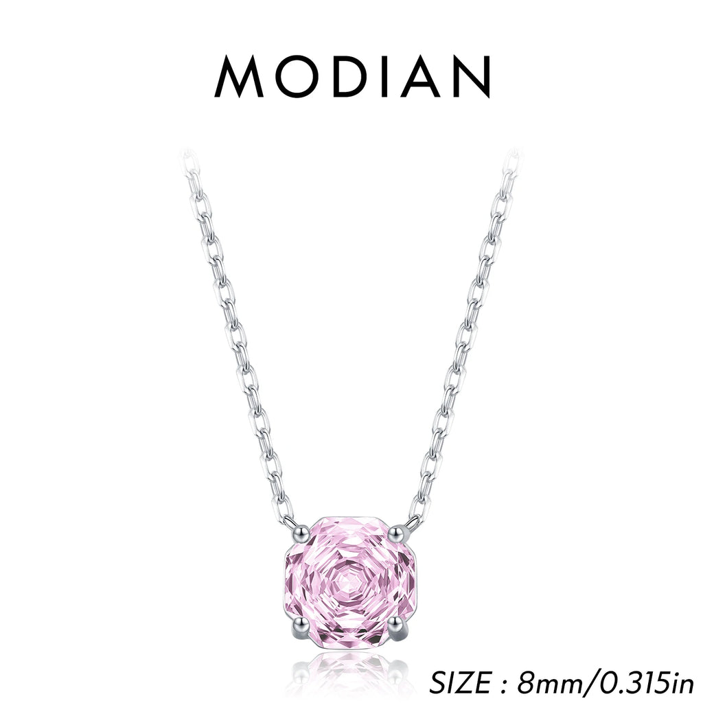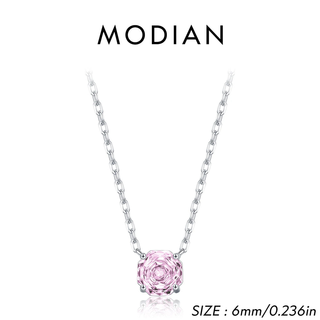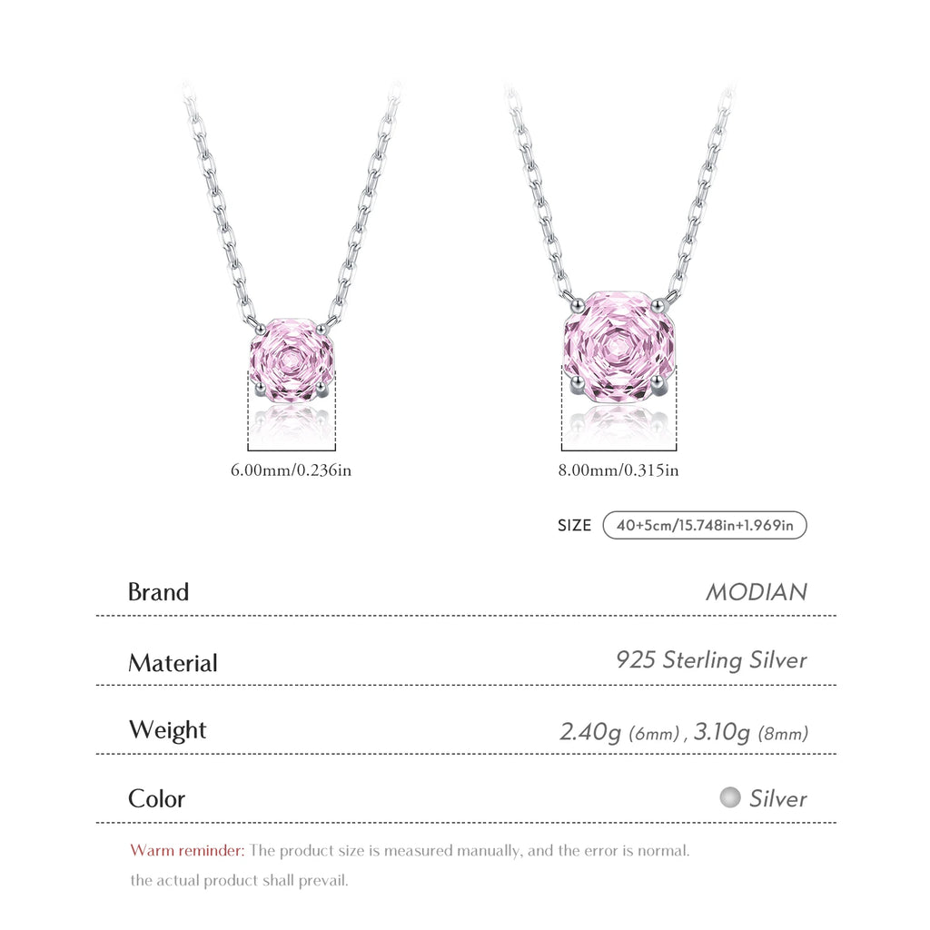 MODIAN Rose Cut Pink CZ Pendant Necklace 925 Sterling Silver Sweet Delicate Light Pink Necklace For Women Party Fine Jewelry