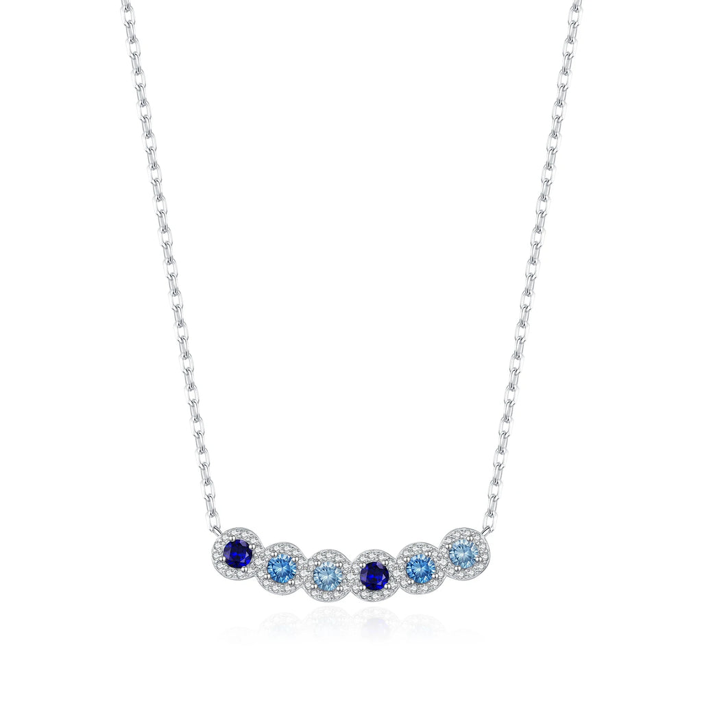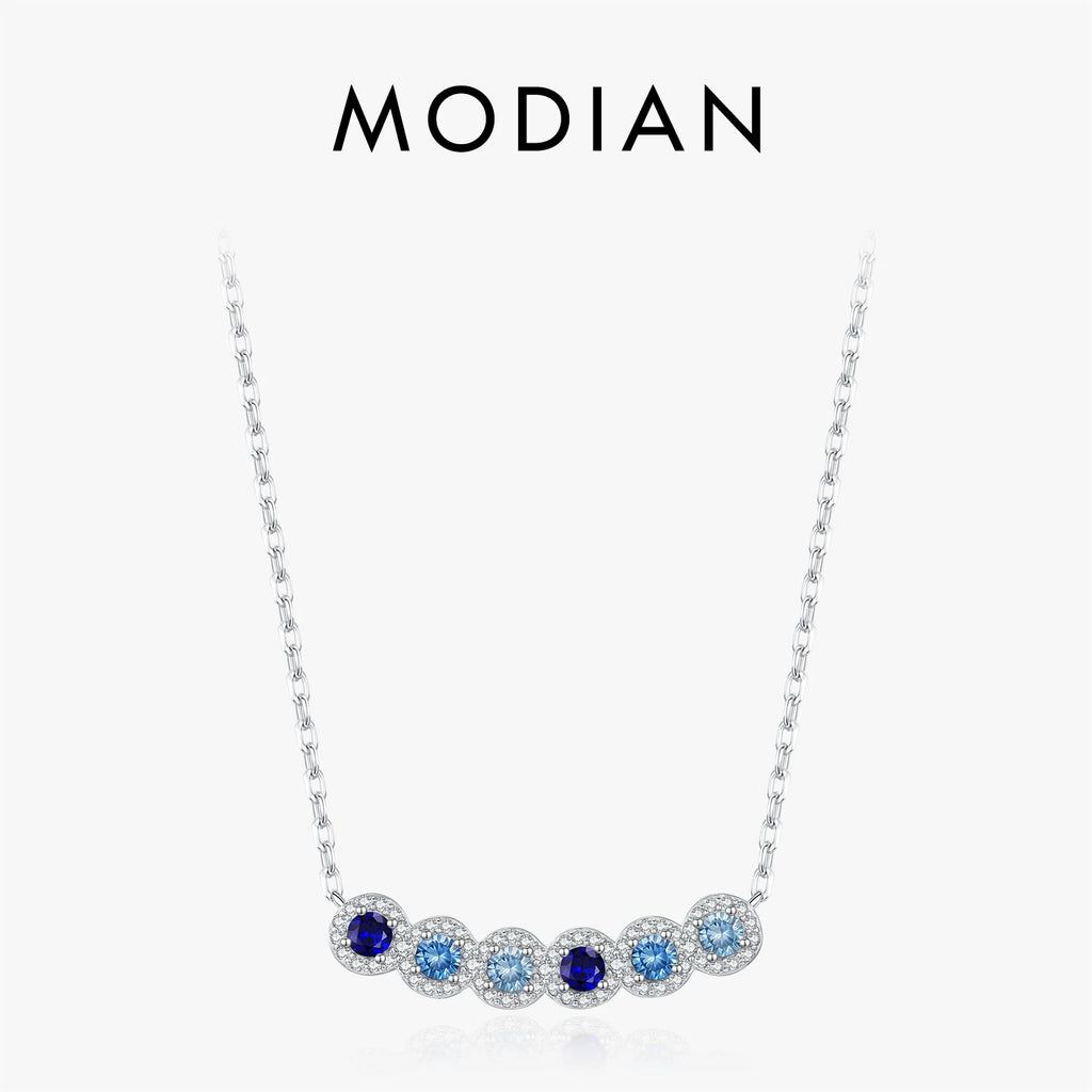 MODIAN Solid 925 Sterling Silver Fashion Simple Gradient Blue Round Zirconia Pendant Necklace For Women Daily Fine Jewelry