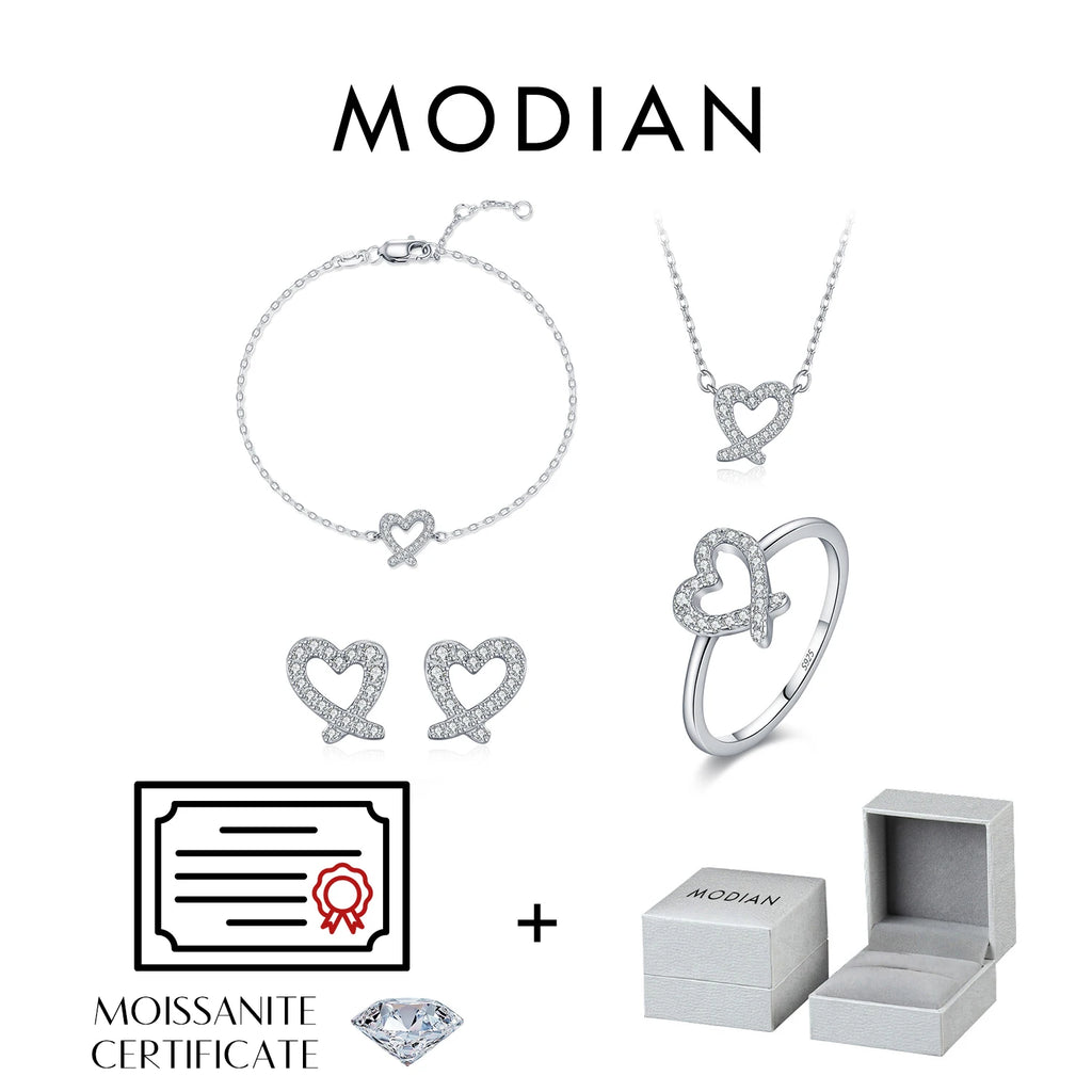MODIAN Sparkle Moissanite Sets 925 Sterling Silver Sweet Irregular Heart Earrings Ring Bracelet Necklace For Women Jewelry Sets