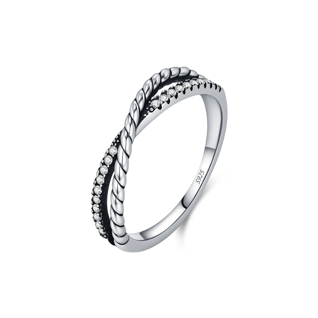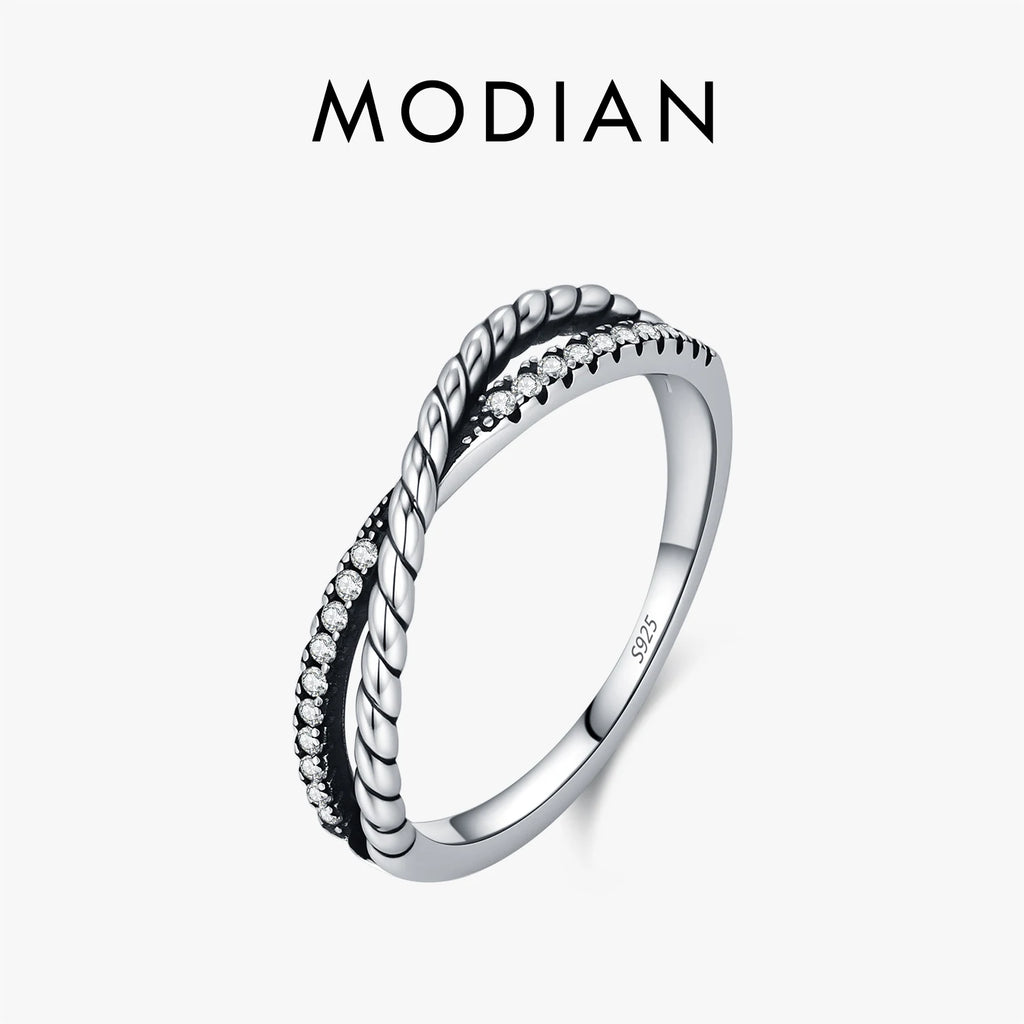 MODIAN Stackable Fashion Rings 925 Sterling Silver Vintage Twist Line Cross Thin Finger Rings For Women Fine Jewelry
