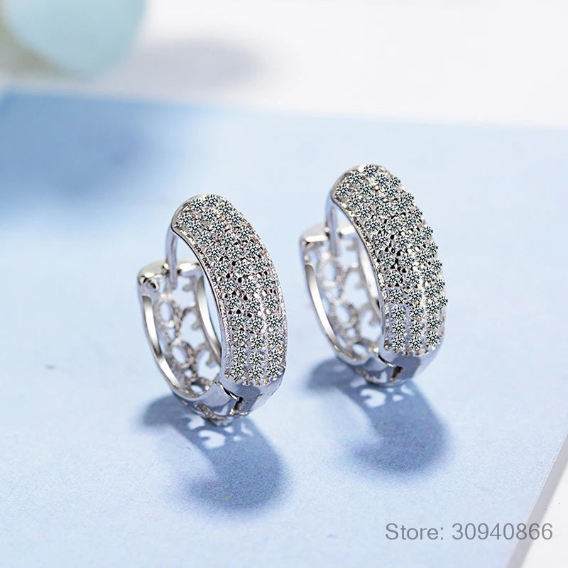 Moissanite Earrings 925 Sterling Silver Ear Buckle Sparking Round Hoop Wedding Jewelry Gift Original for Women D Color