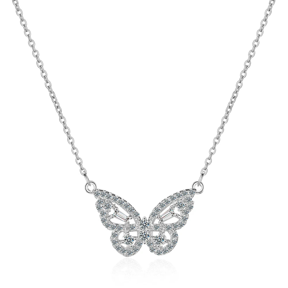 Moissanite Necklace 925 Sterling Silver Cute Butterfly Pendant Necklaces for Women Moissanites Diamond Neck Jewelry Gift