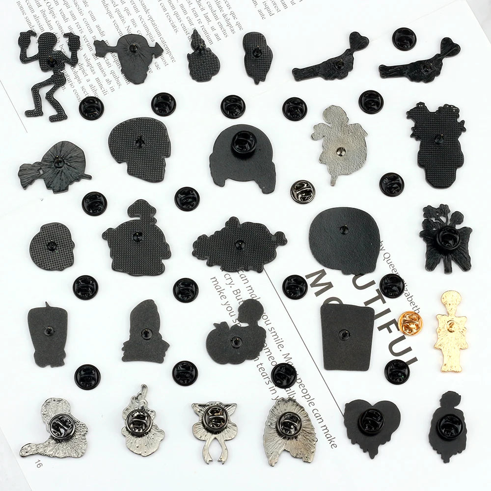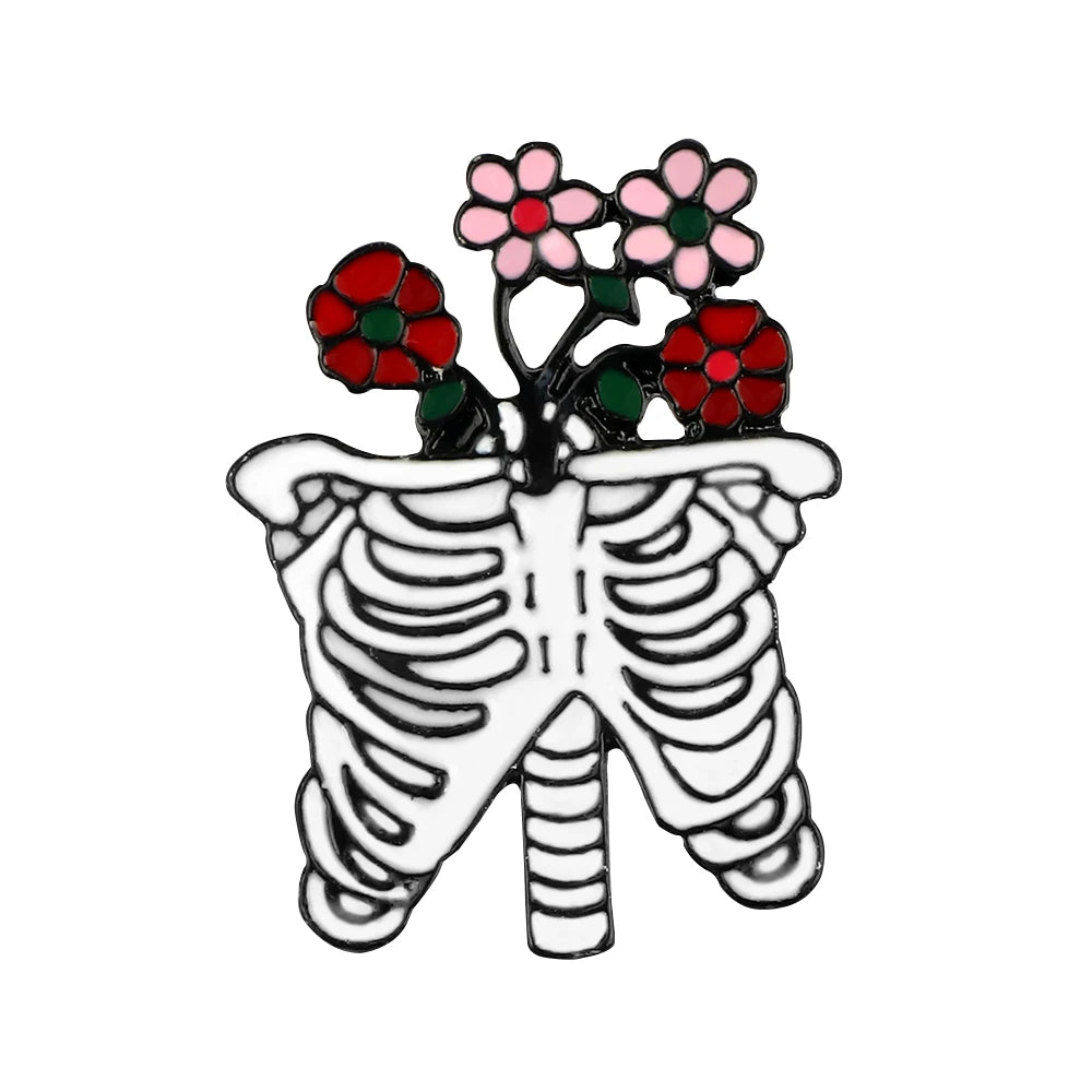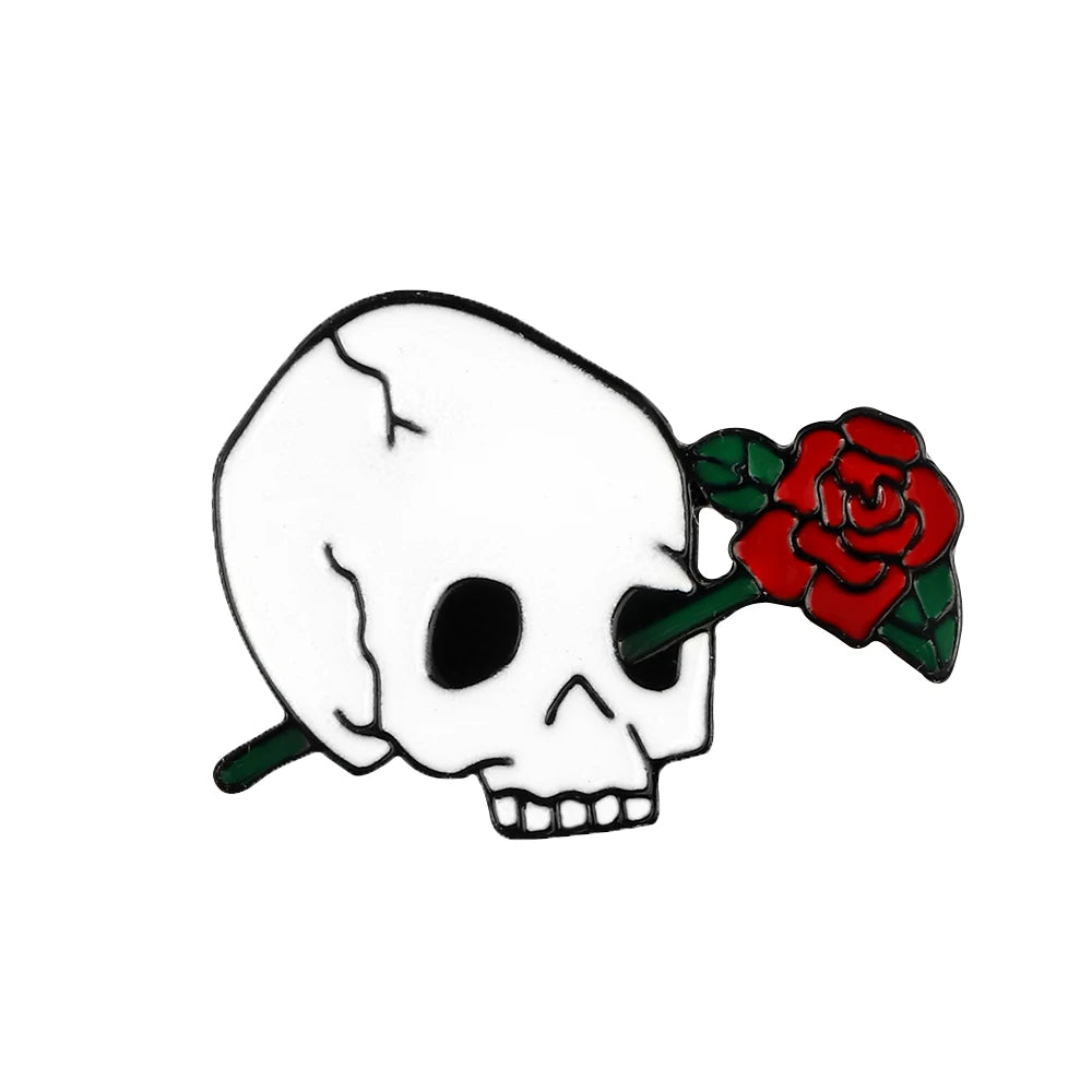 More Styles Halloween Day Punk Skeleton Enamel Pin Women Men Rose Flower Skull Brooches Metal Jean Coat Lapel Pin Badge Jewelry