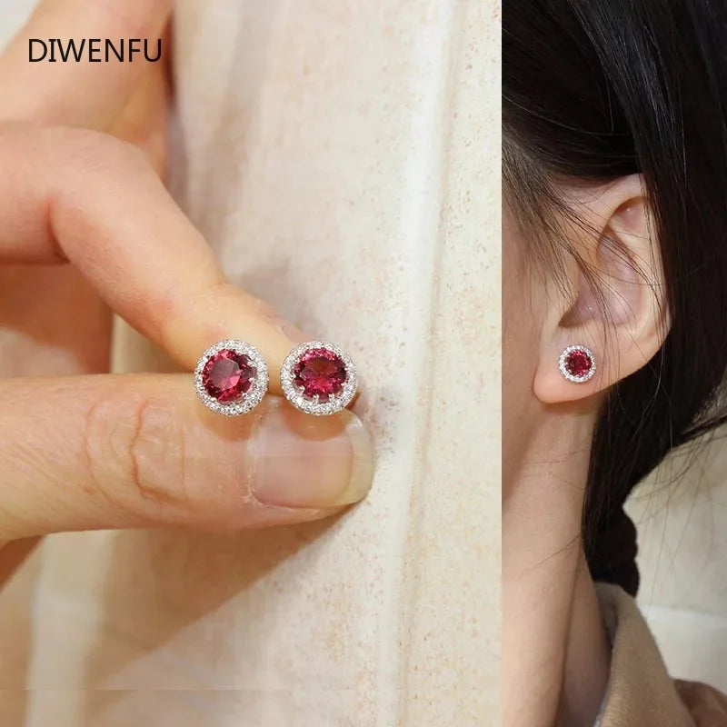 Natural Ruby Earrings for Women Wedding S925 Sterling Silver Fine Jewelry Round Green/red Diamond Luxury Brincos Women Earring