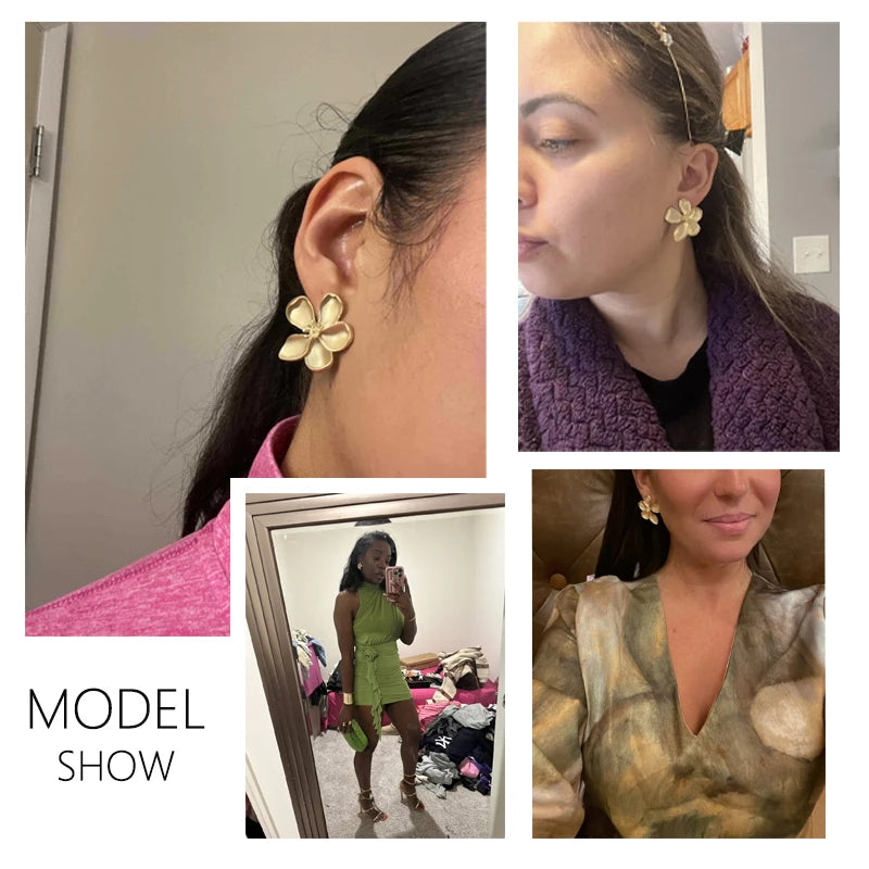 New Exaggerated European & American Style Metal Flower Stud Earrings For Women's Daily Wear Fashion Gold Color Jewelry Gifts