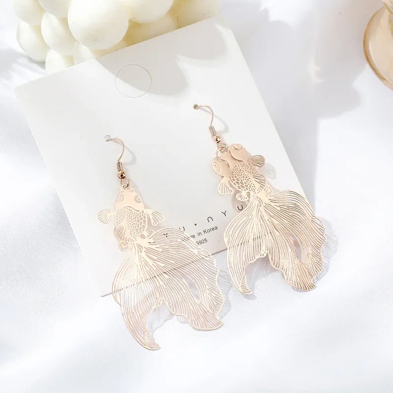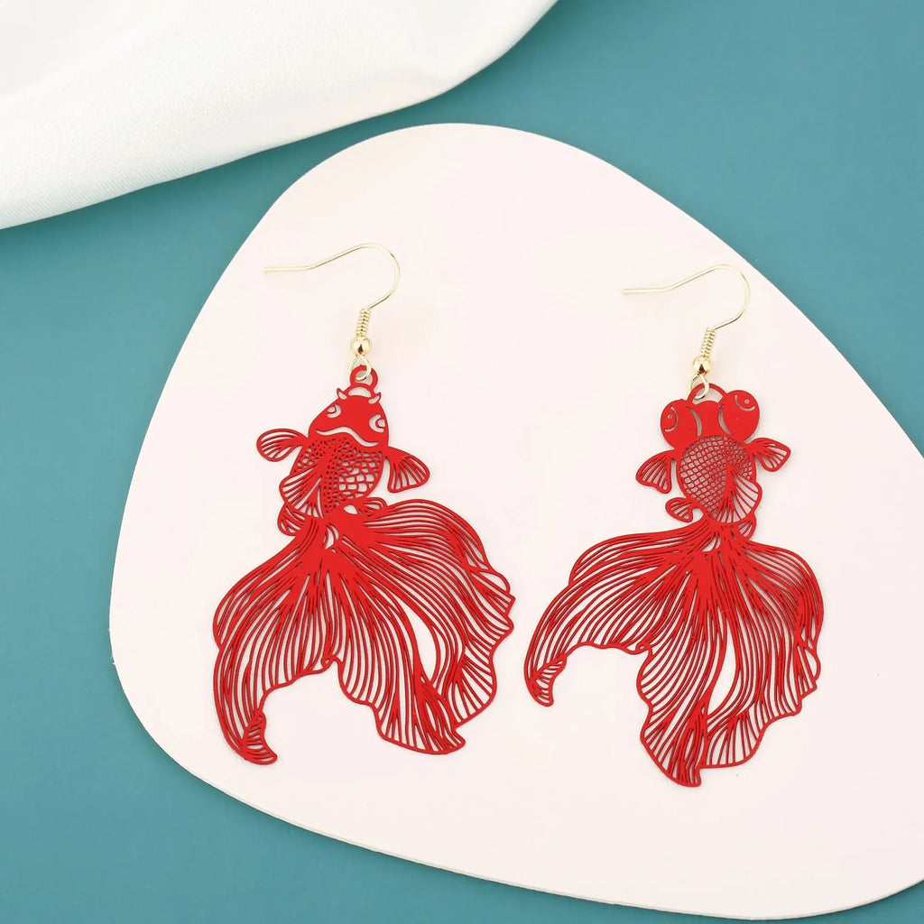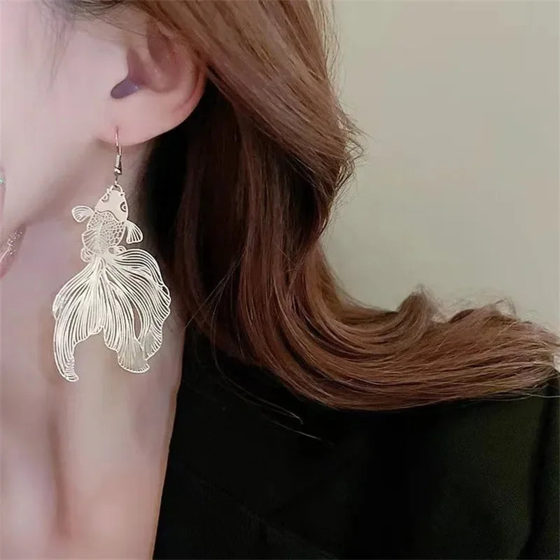 New Fashion Koi Earrings Exaggerated Hollow Metallic Pendant Goldfish Earrings Geometric Earrings for Women Jewelry Fish Earring