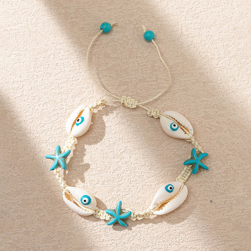 Shell Ocean Braided Bracelets with White & Blue Star Fish