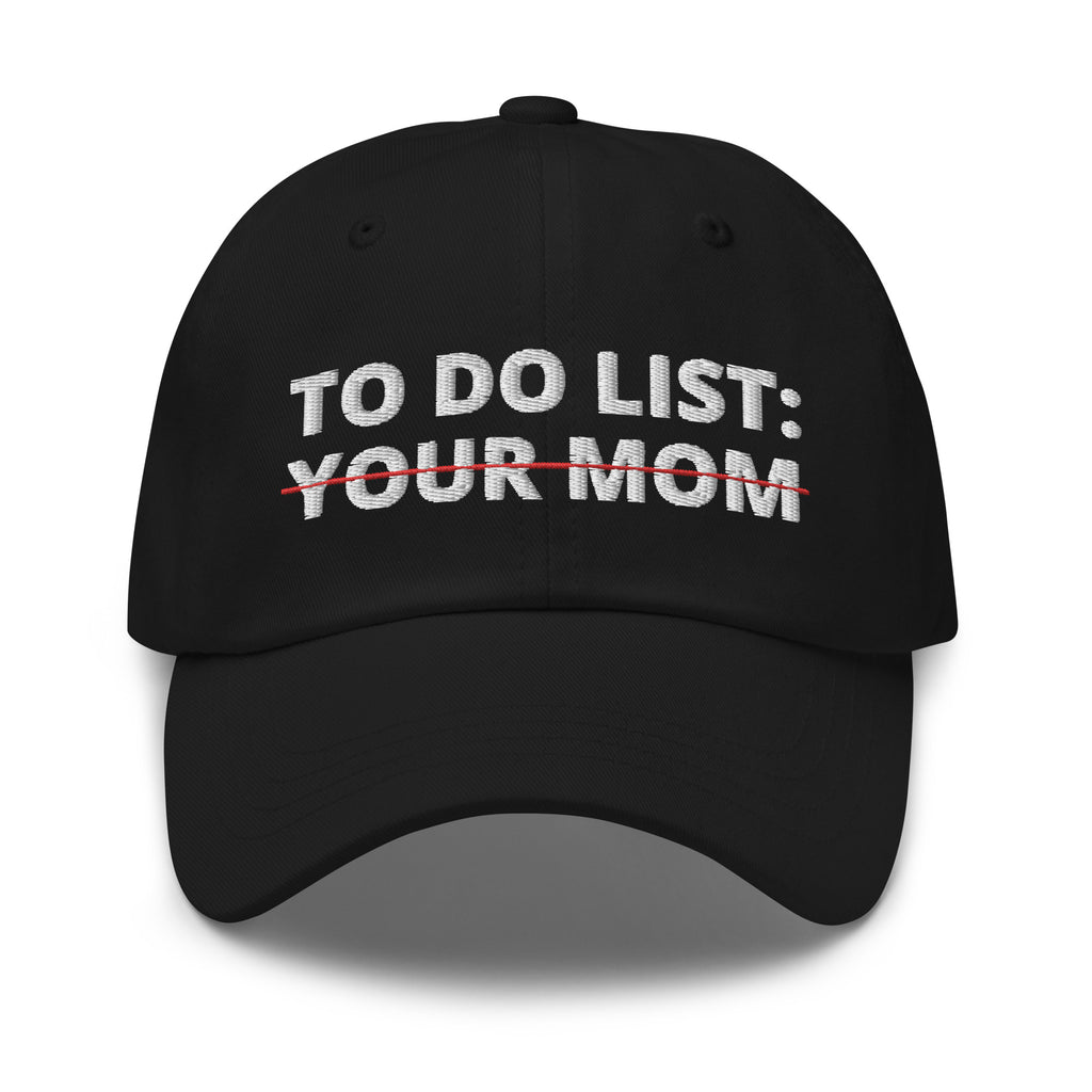 To Do List Your Mom Hat, Funny To Do List, Sarcastic To Do List, Sarcastic Gifts, Adult Humor Hat, Your Mom Cap, Funny Mom Jokes, Funny Hats