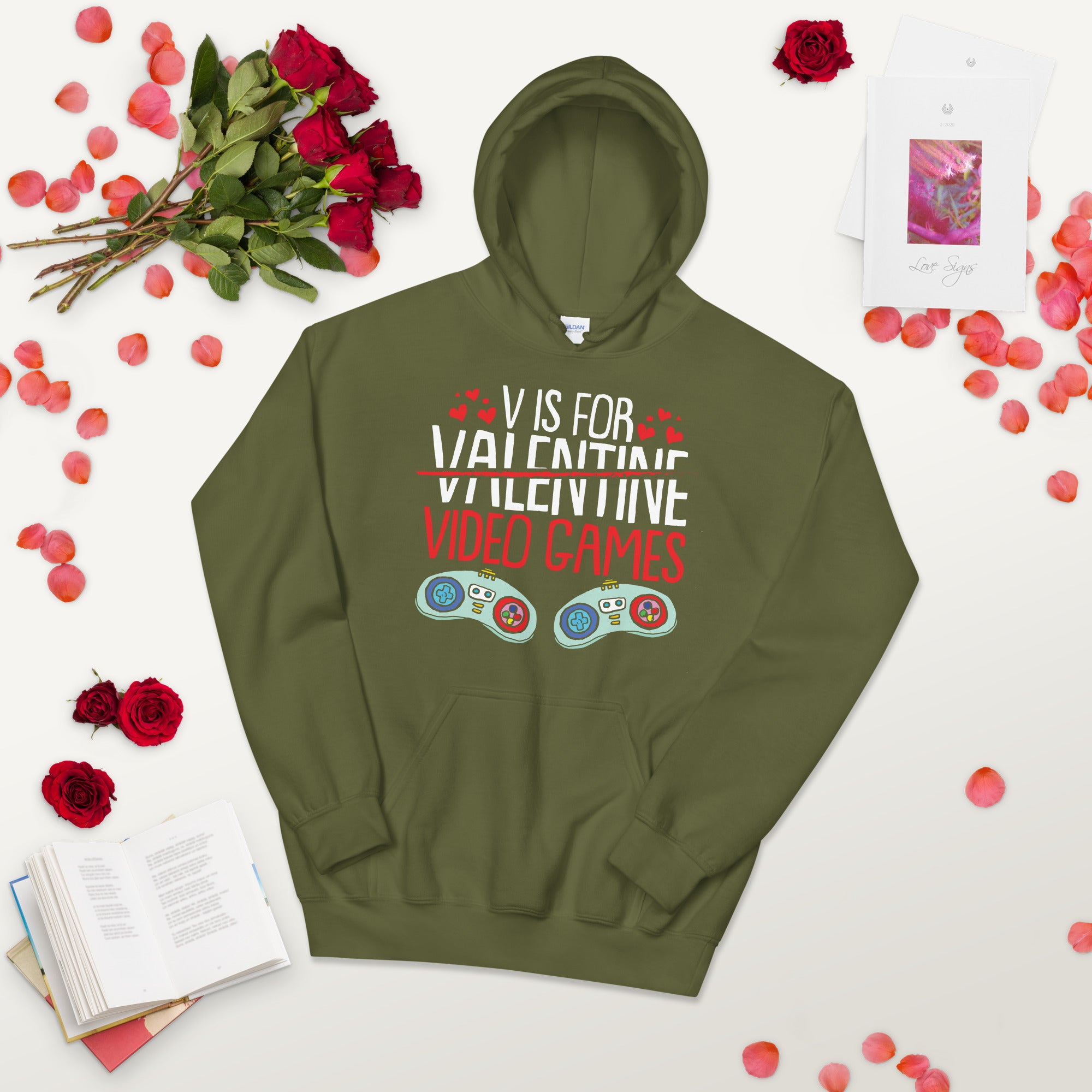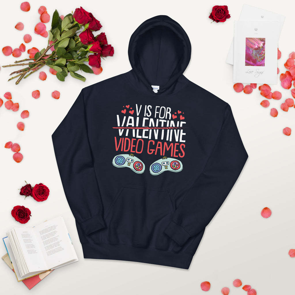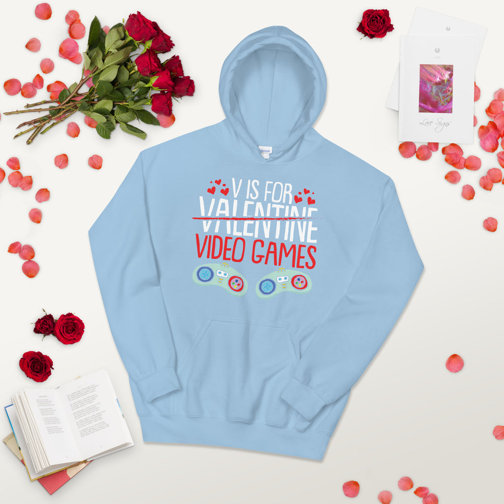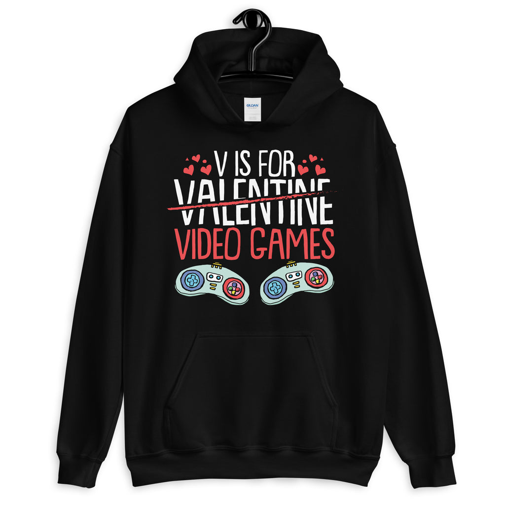 V Is For Video Games, Video Game Hoodie, Gifts For Gamers, Gaming Lover Shirt, Gaming Hoodie, Valentines Day Gaming Hoodie, Funny Gamer Gift