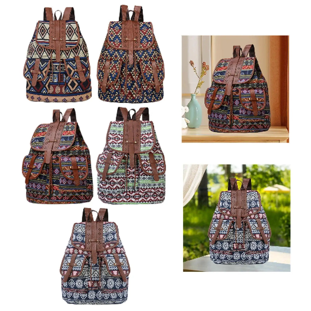 Women Ethnic Pattern Backpack Oxford Cloth Female Casual Fashion Travel Daypack Rucksack for Dating Street Daily Shopping Gift