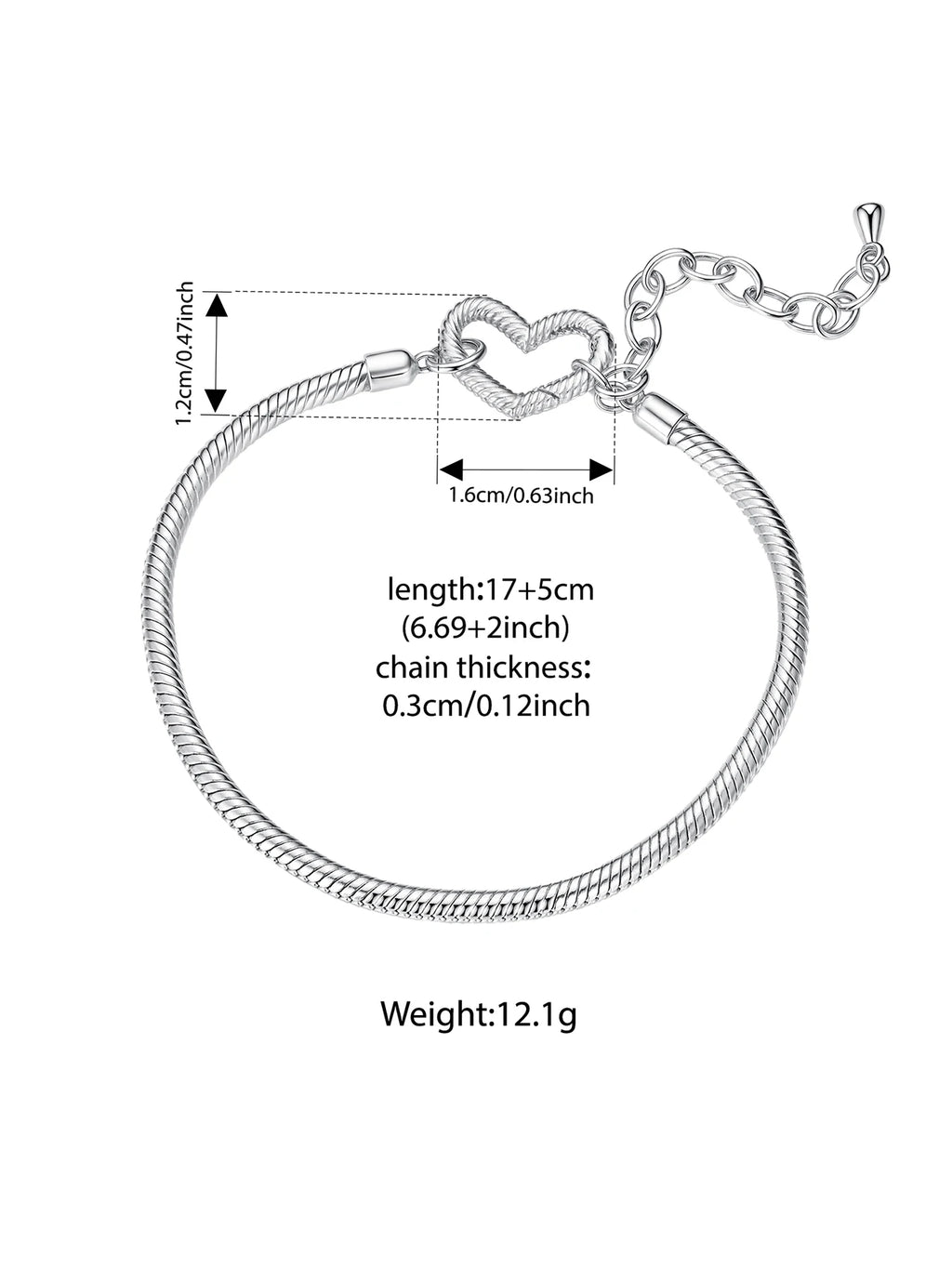 WOSTU 925 Sterling Silver Love Heart Bracelet Base Snake Chain for Women Fit Beads Charms DIY Adjustable Gift Fine Jewelry