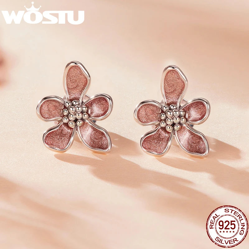 WOSTU 925 Sterling Silver Orange Flower Stud Earrings For Women , s925 Autumn Flowers Ear Studs Handmade Jewelry Gift CTE1236