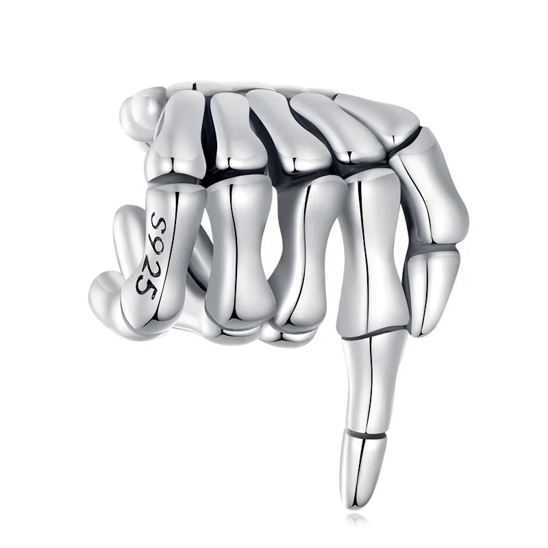 WOSTU 925 Sterling Silver Punk Vintage Skull Charm Bead Butterfly Pendant Heart Hand Safty Chain Fit DIY Bracelet Jewelry Making